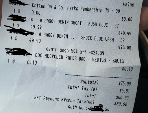 Read moreI shop there twice. I won't go there anymore.Price are tricky. They put clothes on sale. But charge original prices unless you remind them. I remind the cashier at first time when I shop there. Second time. I did not pay attention to. After I got home .look back the receipt. They DID NOT charge on sale prices either. Totally disappointed. not ever...