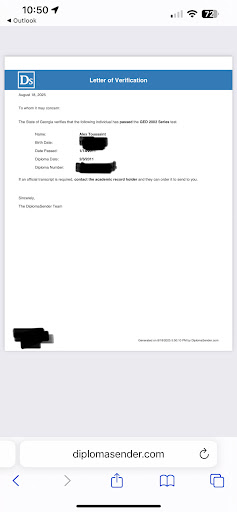 I can’t leave them one but they’re basically backed by you guys right? So here u go. U should check on DiplomaSender. They’re scamming ppl. Go look at their reviews EVERYWHERE. DiplomaSender needs to be clearer about what each document is actually good for. They sell transcripts, diplomas, and a “letter of verification” all at the same price, but the letter isn’t accepted for apprenticeships, schools, or most official purposes, it just says you passed. They shouldn’t be charging the same $22 for an unofficial letter that you can’t actually use. Look what they sold me lol. The letter of verification should not even be sold at all. especially when people order in good faith thinking it will work. It feels like they’re setting customers up to waste money instead of giving straight guidance. No refunds of course. Just...