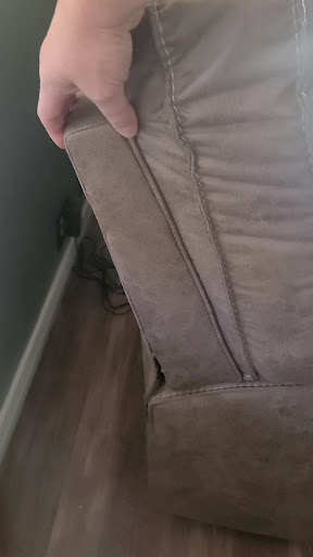 Fast Forward to August when we're tentatively supposed to receive our furniture and we call the store to let them know we aren't done remodeling and need delivery middle to end of September. Suddenly it's a problem, the store states the delivery is set and the furniture needs removed from the warehouse. We are told we'll be assessed fees and we tell the store we'll go ahead and accommodate and have it delivered and placed in our garage but we aren'table to view the furniture until we unwrap it. Furniture arrives all wrapped in plastic and we store it for 3 more weeks until we can move it in. When we get it moved in and unwrapped we immediately notice scuffs/scratches as well as staples missing off the back of one of the couches in addition to that side being wobbly/loose. I immediately notify the store who states there's no warranty as it was a floor model. I clarify that this was not damage incurred at the time of sale, this is damage incurred during the storage/transport/delivery as it was under the wrapped plastic.