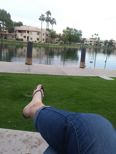TRANQUIL, SCENIC! Nice place to unwind, many places to indulge! My first choice for eating was at Pita Jungle! Chosing outdoor seating and warmed by a heater shaped like a long stemmed mushroom....I couldnt help but relax and let my mind wander..childhood memories...when i saw those ducks! The Lake is so cool and charming and this area is a good place to take someone when trying to impress... healthy, good food and drinks! Banking, waxing, massaging, eating, coffee lovers brew, fresh produce, meat, sandwiches, ice cream, Sushi too ! To me, Sprouts is a clear winner - a good selection of grains, nuts, flours and other delights in barrels! Each day one can sample their featured coffee! So nice! Bargains galore! Acessible but inadequate parking space in this...