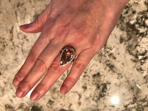 We returned to the store a few weeks later to pick up the 14 year old watch that needed to be sent out and quickly went over to the counter to see if that magnificent ring was still there. It was, and it was on sale even more than the previous visit! Bill and Jamie helped us this time and we laughed again about comparing the relative cost of the ring to other worldly goods. We left the store again as we were only there to pick up the watch then go to dinner. While at dinner we joked about buying the ring and confessed how much weâve (mostly wifey) have been thinking about this incredible ring. To us, the ring is a lot money and that money could be used towards other things especially since we are remodeling. After dinner, I told my husband that we needed to just go home and sleep on it and no sooner did I say that, he made a right turn instead of a left turn and headed back to London Gold! Now this was getting real... As soon as we walked in, all three of the sales associates (Bill, Jamie and Dustin) stood up as if they had a bet wagering on whether or not weâd be returning. We talked about wanting Dustin to be a part of this too since he initially spend over an hour with us and helped us find this amazing ring. After a little negotiating, we came to a great price for the ring of a lifetimeâfor us. It needed to be sized and we returned the next day to pick up our new heirloom.