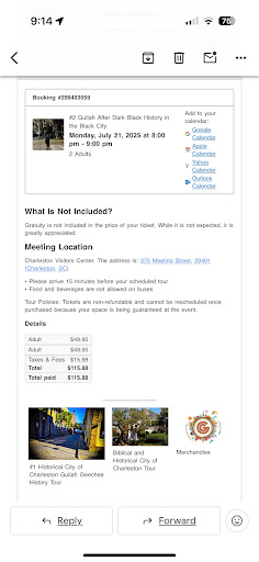 Read moreThe positives: The vehicle was comfortable and our tour guide, Godfrey was warm and welcoming as we boarded the vehicle. He was beyond knowledgeable and passionate about his city and his Gullah heritage. He pointed out facts and pieces of history (sites of auction blocks and slave slaughter houses/jails, historical figures, etc) that are an undeniable part of the city's history. The not so positives: my friends and I did not experience the tour that was advertised. We sat for 20-30 minutes at the visitor center while Godfrey started off letting us know that this would be unlike any tour we'd experienced. That part was fine, but almost as if a switch was flipped, he began to make disparaging, offensive comments about a specific tour guide, which frankly was tacky & unprofessional. Our tour consisted of only a few blocks, a serious lack of organization, and hotep-style rants, with splashes of facts and history. In subsequent conversations with two other Charleston residents who were familiar with and recommended his tour, we learned that Godfrey has presented a completely different tour in the past. The two residents named a number of landmarks and parts of the city that are usually included on the tour, but we were not taken to any of those locations. Me and my friends would have loved to have learned more about Gullah traditions and how they've been sustained throughout history. But again, we did not experience that and it was extremely frustrating and disappointing. I read through a number of positive reviews before booking this and I truly wish we had experienced the tour that justified spending $40 and resulted in 5...