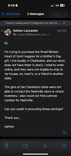 Read moreDO NOT PURCHASE FROM HART ‼️‼️‼️‼️ In November I purchased a charm bracelet from the Hart store in Charleston. With the chain and only three charms it was $213.00 which I was happy to pay since the sales associate assured us that the bracelet would “never tarnish” and “the jump rings are extremely strong to ensure secure charms”. So, I was beyond disappointed when in less than 4 months 2/3 of the charms have fallen off the bracelet and the chain was beginning to tarnish. I reached out their customer service where they told me the best they could do to fix this situation was offer 15% off the charms for me to replace them “as a token of their apology”. For a bracelet over $200 being completely broken after less than 4 months, offering only 15% off is more of an insult than a solution or let alone an apology. I would not recommend paying their high prices for their clearly terrible quality jewelry. I was so sad especially since the products are so cute, but the way they handled the situation was beyond careless and rude. I will never purchase anything from here again and would recommend to anyone else to do the same and save the money and hassle of trying to deal with their horrible...