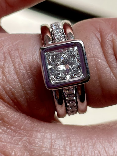 Read moreMy husband got my engagement ring from John 23 years ago. I felt my setting was dated, chunky and my beautiful diamond seemed lost after all these years. Over the years John and I had talked about changing the setting at some point. When I finally made the decision to do it I called John and made an appointment with my ideas. John was right there, he had listened carefully over past appointments and was able to help me navigate through my thoughts of what I was looking for and what changes I wanted and should make. With John’s guidance we broke it down, came up with a plan and he nailed it! I am looking forward to and loving that I will be able to continuously change up the setting with the remaining diamonds from my original ring still to be set in different bands! My husband absolutely loves it, as do I!