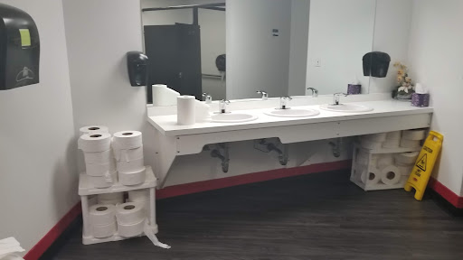 I would have given this place 5 stars until I saw the bathroom. It wasn't disgusting ir smelly but to store toilet paper on cheap shelving completely exposed and under the sink is just so un classy. Then a roll of hand towels sitting on the counter and a slippery when wet sign just sitting out. There was also garbage just laying on the floor. Might want to clean that up between movies.