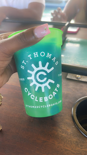 There were six in our group in St. Thomas for the day as the first port of call off of our cruise ship. I had booked the St. Thomas Cycle Boats afternoon water island tour on Viator prior to our cruise. The marina where STCB leaves from is just a short 5-10 minute walk from the pier where the cruise ship docks. Besides the six of us aged 22-52 there were two other ladies that joined our group. We had a blast drinking delicious rum punch and listening to Caribbean tunes while taking in the spectacular views from the water and pedaling (well, sometimes) to the beach. Captain Ann Marie told us stories and local info and she and first mate Val made it such a great time! The beach was beautiful and we had it practically all to ourselves! There were food and drinks available at two different venues on the beach although we did not visit either one. After almost two hours relaxing on the free beach chairs and swimming in the crystal clear water it was time to head back to the marina. The trip back was just as great although we were sad that our time was almost over. There is a restaurant right at the dock where you disembark the cycle boat in case you want to grab a bite before or after your excursion and there is also an ice cream/coffee hut that also serves alcohol (mango smoothie with banana rum is delicious). I highly recommend you check out St. Thomas Cycle Boats on your next trip to...