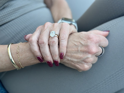 I'm not a rich person, FAR from! Standing in a jewelry store always feels like I'm swinging well above my weight class. After trying on a few pieces I kept going back to this lovely oval shaped ring that has four smedium (yes, smedium) blue diamonds surrounded by small white diamonds, with a sprinkling of smaller diamonds set into it band. It's very simple and not ostentatious, but so beautifully arranged. I loved it. I then fall in love with the matching pendant (because of course). Again, not huge, but properly sized for me. I'm stressing because I worry that I'm shopping at caviar level with a pizza slice budget. Shoka priced it out for me, and bless her, the cost of both fell into my budget zone. This never happens. Not to me at least. I panic. I take turns looking at both pieces, and finally give into shoppers guilt and purchase only the pendant. That night, I fidgeted. I have never coveted jewelry before, and I've never purchased my own jewelry. Ever. I'm an old married lady in her mid-40s, so the idea of owning the the matching ring kept bothering me. I do some budgeting math and realized that I can, indeed, buy the ring. I return to the store the next day and buy the ring.