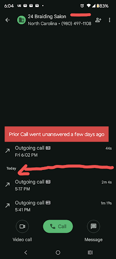 Me: ma'am, I just called. Will you be in the salon or do I ask for someone? Her: how long will it be? Me: Google maps says 22 minutes. Her: okay, I'll let them know Me: do you take credit cards? Tap n pay? How do you take your money? Her: I couldn't understand but I heard Zelle. Me: Good. I can Zelle. What determines $185 or $205? Her: I need to see your hair. Me: ok, I can text and happy to get it resolved as I don't want to drive all the way over nor do I want any misunderstandings Her: ok. No text. It'll be $205. It won't go over $205. Me: Ok, no thank you. Her: hang up. ** I can laugh as I know Auntie uses WhatsApp to talk to folks back home but I guess she didn't even want to hear or offer ... She can see my hair via video or WhatsApp.