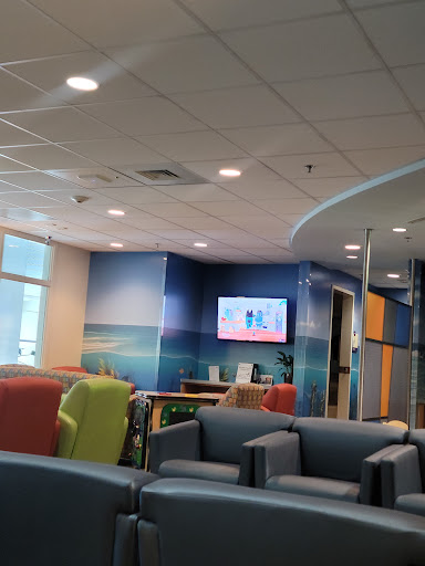 They currently only all both parents to come in with their kid. The waiting area for procedures is on the 5th floor. It has a kids waiting area with an air hockey table in it. For any time of surgeries and procures you typically go to the 5th floor. We been here a few times since covid and there place isn't crowded at all.
