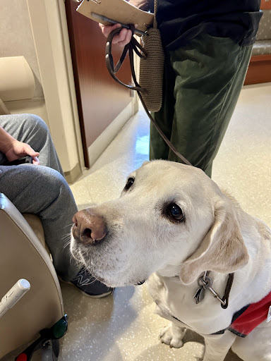 Discharge went well, my meds were called into my pharmacy and discharged was explained in detail. PT and OT were amazing. They really made sure I was safe to go home today. We also got to see the volunteer dog Oscar, he was adorable and made our day.