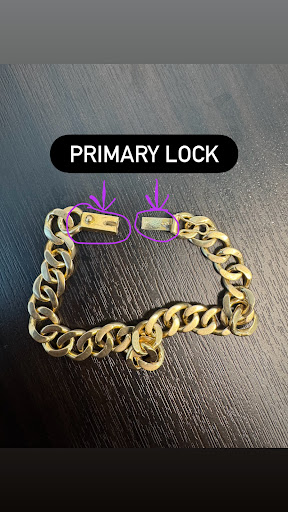 Here's what happened: I went in today because my gold band (bracelet) or whatever you call it got jammed. I couldn't unlock it, the mechanism to open the latch was stuck. I even had someone else try to get it off. But we eventually decided to stop trying to open it because we were afraid of breaking it. The band has two safety locking mechanisms. The primary lock is the part that got jammed. The secondary lock is a latch which clicks in place.