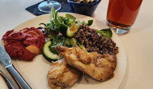 Third dinner visit, there was good chicken, salad, cauliflower, sweet potatoes with spinach, and potato salad. Desserts were a bit disappointing, but I was able to eat enough for dinner to tide me over. No ice cream bar, but the champagne was available.