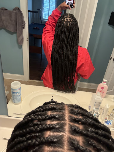 Ā Ā Ā Read moreI wanted to give this place 5 stars because they got me in quickly and were friendly but because of the quality I simply cannot. I have 4b hair that was blown out prior to appt and my ends were not tucked properly in the braid. On the first day, I noticed the last 4 rows of my knotless already coming out of the braid which was disappointing. I was going out of the country the next day so I didnāt have time to have it fixed. Another thing was they braided my natural hair too much before adding the braiding hair which made my hair look extremely flat and lifeless. Lastly after multiple attempts at the middle part, my part is not in the middle. Even though I had some issues, everyone was very friendly, timely and I was able to get an appt next day after calling. The price was also great too. Iām hesitant to give them another chance but could have been a one off experience. Photos are of my 2...
