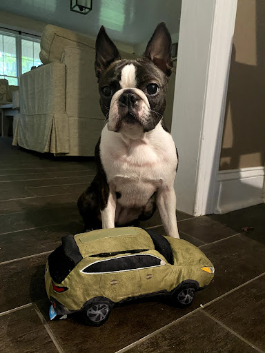The manager came and personally thanked me for coming so far to buy a car from them. It came up in the conversation that I had brought my dog, Prim with me. The manager disappeared and when she returned, she had a mini-Outback dog toy and a frisbee for Prim! The Outback is THE cutest thing!