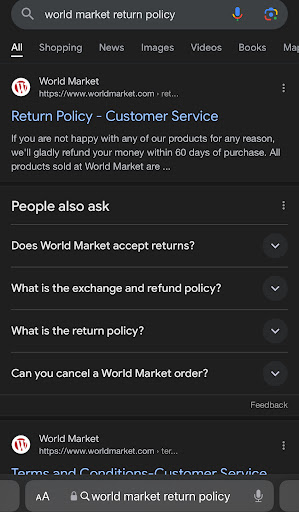 On the day that I bought these incense I was in the store and quickly Googled said policy (due to there being no way to even review these products online -- on the World Market website) and the very first thing you see is that "if you are unhappy for any reason" yada yada. So I felt it was safe to swipe even without a way for consumers to review these particular items..