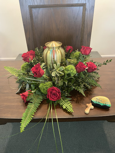 We ordered two sprays. When we asked about a third arrangement, an arch in front of the table as had been recommended to us, he told us that he loves to do a nice wreath for around the urn.