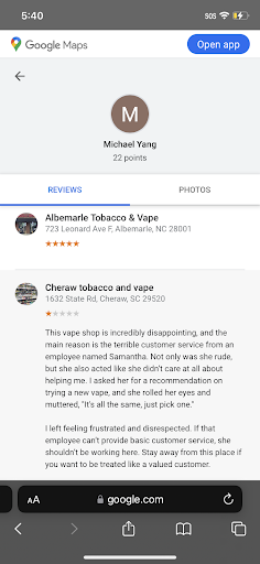 Ā Ā Ā Read moreI stopped by here on a short trip once while visiting family. I've never had any experience with vaping but was curious to check it out. One person in particular, Kevin I believe, was unbelievably friendly and personable when answering my questions, running me through all the brands, and explaining things I hadn't thought to ask. He was just all around friendly and knowledgeable. I wasn't too sure on flavors or any of that stuff, but I left there with one that I still use to this day so that says something....