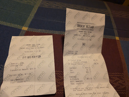 Read moreGood evening Family. I visited this location for the second time. I have visited previously in my past.. I decided to see Good Fortune with Keanu Reeves and Keke Palmer. I arrived and parked in the huge parking lot. They also have handicapped spaces. After all, they have 24 auditoriums. Mine was Auditorium 19, seat was G18.. I showed my confirmation# when I arrived. They scanned the bar code on my phone. Then it was off to the rest room. Rest room is huge and they have stalls on both sides. The rest room was clean and neat. The theater is simply Beautiful, more beautiful than it was in the past.. I decided on pretzel bites when I arrived at the concession stand. They have a lot of different kinds. I decided on unsalted. It took awhile for it to be ready. I also ordered a small popcorn, no drink. Arianna, whose name is spelled differently waited on me. She was nice and polite. While I waited, I went over so they can update my rewards. While they were doing that in customer service, I continued to wait for the pretzel bites. When I was finished with customer service, I went over and received my pretzel bites. I headed to Auditorium 19, where my seat is G18. I paid for my seat and food with the gift card Yolanda gave me. Yolanda is my good friend. The gift card has a $50.00 value. When I arrived in Auditorium 19, I found my seat, G18. I then sat down and arranged my food and my blanket. Then, alas, I looked at the seat and it did not recline. I was livid!!!! I wanted to recline and relax. I didn't want to sit regular since I can do that at home.. I thought about leaving but since I had already paid for my seat, I stayed. Good Fortune was ok. I had an ok experience. Would have been better with the high back rocker seats so you can lay back and enjoy the movie. AMC should take one Auditorium at a time and rehab it, put new reclining chairs in and take the antique chairs out. Workout, be healthy, fit and Fabulous. Why don't they have reclining seats here in Cherry Hill? AMC in Deptford does. I paid $9.59 for a senior ticket on-line, a matinee...
