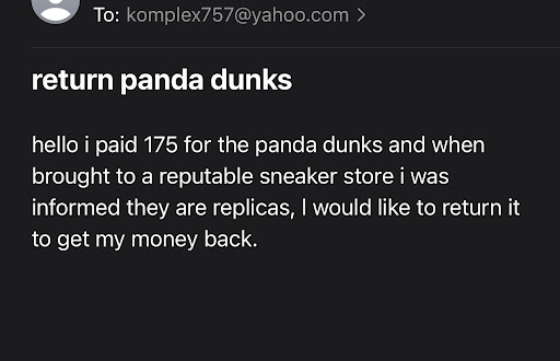 UPDATE- i don’t like being called a liar here is the EMAIL AND MY TRANSACTION PROVING I DID IN FACT PURCHASE REPLICA PANDA DUNKS. OVERCHARGED...