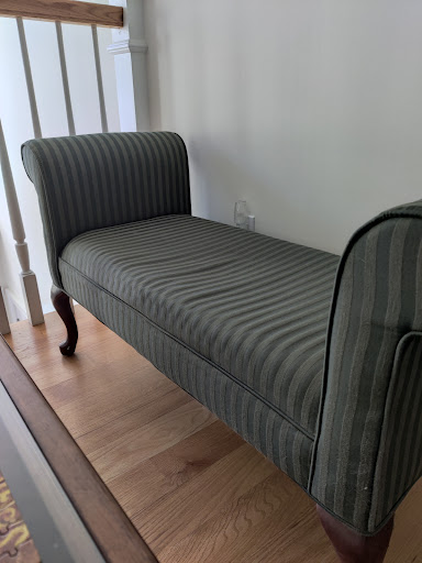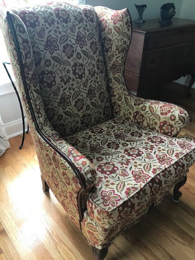 We have a Martha Washington chair in desperate need of an update to match our new living room furniture. We contacted Mark who offered to bring fabric swatches to our house so we could avoid the showroom during this Covid era.
