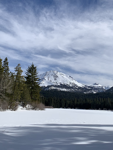 Great photo spot of Lassen Peak. Heavily trafficked trail. Popular spot for snowshoeing in the winter, however on 3/1/21 the trail snow was fairly hard packed and I walked the entire loop around the lake in hiking boots without ever donning my snowshoes. Park entry during the winter is only $10 with ample parking at Loomis Ranger Station. Clean restrooms next to the Ranger Station. Rte 89 closed in the winter beyond Loomis Ranger Station...