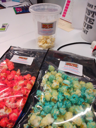 I used to see people leaving the shop next door where I get my dreads retwisted and coming back with bags of deliciously aromatic popcorn all the time. So I finally went there myself yesterday and good God it's a smorgasbord in there! Over (or about) 40 different flavors of kettle corn and probably six different sizes to choose from (although I could be wrong on that).