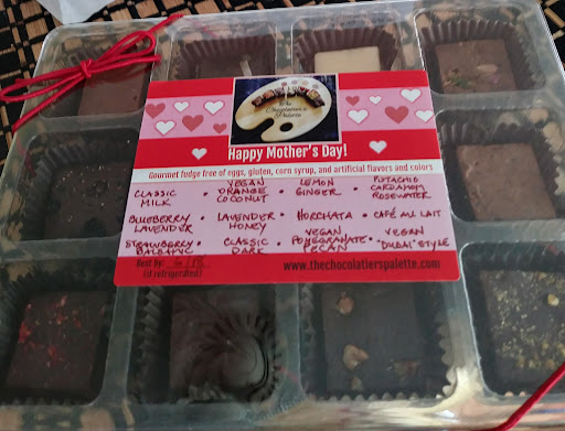 A chocolate sampler was personally delivered by the owner, Jill, on Mother's Day. My daughter surprised me with this wonderful gift of amazing "melt in your mouth" fudge squares. Each flavor in the pistachio cardamom rosewater chocolate was blended but could be tasted individually as was the coffee in the café au lait. Can't wait to experience the other flavors! A beautiful, delicious gift for any occasion. Many thanks! Very happy to support a local business in...