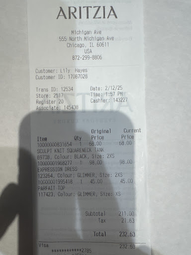 Read moreI love Aritzia, but I had a frustrating experience recently. Two days ago, I rushed into the store and grabbed some items that were on sale without trying them on. When I was checking out, I asked the cashier if these items were returnable, and she assured me they could be returned within 14 days. However, when I returned the next day to return them because they didn't fit, I found out that one item was 50% off, making it a final sale, and the other item, which was discounted by 20%, was only returnable for store credit. Once again nothing of the above was not mentioned to me during the purchase. I felt disappointed, especially since I had specifically asked if the items were returnable. And when I told the cashier that I was told just yesterday, that this item is returnable, she said “Well, this is our store policy, it makes it a final sale, it even says here on the receipt”. What’s funny though, is that I get the receipt only after making a purchase, so how does it make me aware of that information? I think Aritzia should make their return policies clearer, either by displaying them prominently in the store or ensuring cashier communication during the purchase. I've seen other reviews mentioning similar issues with return policies, so I guess that’s how...
