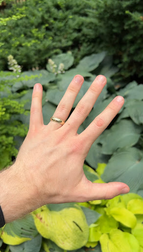 We ended up having my engagement ring and my husband‘s wedding ring made by them, and then after having my husbands wedding ring made, I ended up wanting to make a more feminine, mini-version of his ring to be able to wear myself as well, and they helped us make that too.