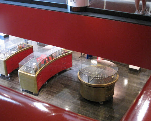 I love the way they displayed vintage pieces under little glass globes and the display cases are stunning. Most of the clothing and jewelry is rather flamboyant, as is the dominantly red space. In general, Ikram definitely stocks far flashier merchandise than Blake - which is more minimalist. These days I cannot afford any of this, but it sure is...