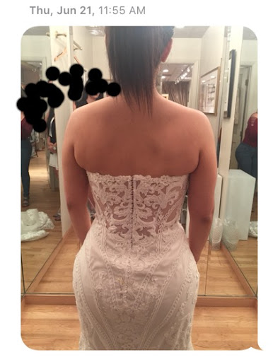We arrived the next morning and she already was picking out the dresses we told her that we loved yesterday and let us look around more. Graciously adding multiple dresses to my collection in the fitting room. A few people from my party where running a little late due to traffic so we decided to start with a dress that wasn't my favorite but I wanted to try! khrystyna was very easy to talk to and was a great helper in the fitting room especially for my first time trying on dresses. She made me feel very comfortable. Needles to say I fell in love with the first one I tried. Mira was even in the store and chatted with us for a moment.