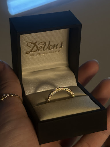 Read moreIf I could give them 10 stars, I would. Top notch customer service. I went to DeVons for a ring repair and sizing. There was a minor snafu that caused a small time delay but Kevin: king of customers, sultan of service, update extraordinaire, made sure I was kept apprised of every new development. I felt very confident with the process. When I received the ring back it looked PERFECT! The staff who helped me during pick up were wonderful, professional, attentive, thoughtful, and friendly.