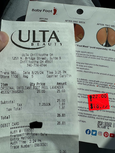 Read morePlease try to avoid going in person to Ulta and just stick to online if you live in the Chillicothe area. Itâs overran with unattended children running and screaming through the store, filling bags with items and leaving them for employees to put up later. Then when I went to checkout, the register was a MESS and the behavior of employees cost the company a lot of money today. They told the woman in front of me to line up in a certain area, so I followed her. They let us and many other stand there in clear view in line for a good 10min til some Karen, buying 1 item mind you, complained that the line is actually supposed to go the other way and immediately the employees change their tune and agree with her, including the girl who told the woman to line up elsewhere. So why did she tell us to line up where we were in the first place and why did they see us there all that time and say NOTHING? Many of us decided just to leave at that point. The employees have no backbone and donât care for right or wrong, just appeasing Karenâs. I left almost $400 in merchandise sitting and I didnât have nearly as much as the other women who also left. There was no reason for all...