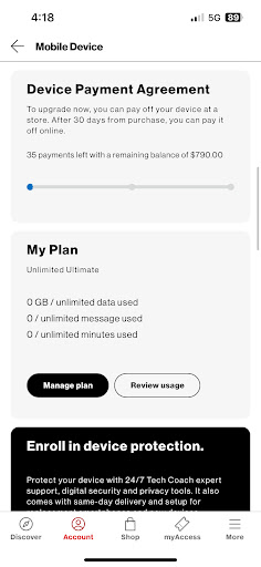 End of day two update, the phones we wanted ARE showing up on our account with an active device payment agreement and is showing paid just waiting activation, but Russel Cellular which is this store (they are not Verizon) said I have not paid it and I’m still without phones, Verizon was nice enough to put my old T-Mobile phone on my account so I’d have a working phone till Russel cellular corporate gets back to me on...