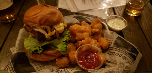Read moreStopped by for my first visit with my son, we visited midweek around noon or so. We indulged from the menu because it was early and empty. We were greeted by a friendly server, she was courteous, funny and really knew the menu well and made great suggestions, we had the chix-charrones as an appetizer (deep fried chicken skins, some even had little juicy pieces of meat still attached, with a tapatio lime aioli) we ate from the lunch menu, my son had the cubano, I had the steak sandwich with a tasty chimichurri sauce. The meal was fresh, hot and the garlic fries were beyond delicious! Crispy, garlicky with just a hint of parmesan. At the end of the meal our server suggested their fresh made peach cobbler, she forewarned us that it would take 20 minutes to cook, but well worth the wait....indeed! Warm peaches, not too sweet, light airy pastry dough on top, powdered sugar and ice cream, it was so good and homey. The actual space is large and has a great pub feel, they have two full sized bars and tons of seating. Will definitely be...