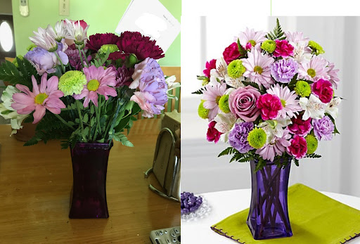 This place is awful!! I ordered via FTD online. The photo on the right is what I ordered. The photo on the left is what my mother received on her 81st birthday. (If they upload correctly!) I decided to call the florist directly to complain so I wouldn't get them in bad with FTD. The woman, though nice, just said can you send a photo of what you expected. I sent these two. So what does this florist do? They call FTD and do some sort of reverse complaint about me! Like I did something wrong! They said they sent the correct arrangement because they followed FTD's "recipe." I tried reaching the florist again, but they won't discuss this with me. So FTD is now involved and said a replacement bouquet would be delivered. Nothing sent. I suspect because this florist refused to resent. The bottom line, if I could rate them ZERO stars, I would. I expected a professionally arranged bouquet for my mother's 81st, instead I get a bouquet that is already wilting on the edges and thrown into a vase. A grocery store bouquet that my 4-year old grandson put in a vase would have been nicer. Stay away from this place. They...