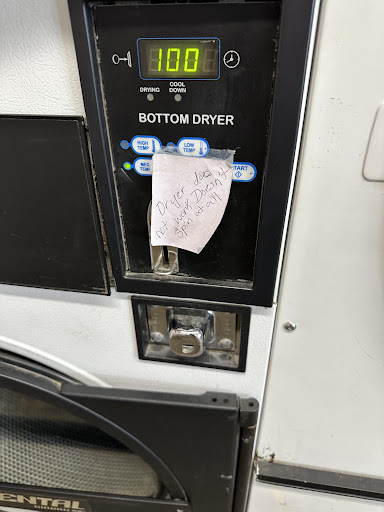 This place gets worse every time I have to go there. 80% of the machines are broken, not exaggerating. The ones that do "work" really don't. Last time I went, my clothes were on the final rinse and spin cycle for an hour and then when I opened the lid, they hadn't spun out at all and were sopping wet. So I got to ring out a whole load by hand and put tons of money in the dryer so negligent management could make more money off of the slum operation he's got going on. The place is neglected and filthy, there is even a pet mouse that we see every time running around not even trying to hide. Dope deals in the parking lot, dopers getting high in the bathroom. It's gross, it's run down, management is never there aside from collecting the quarters out of the machines and it's awful. According to signs hung up, they are working on getting new machines. This has been the deal for over four months. You're better off going to Pryor. Night and day difference between someone who cares about running a business well and someone...
