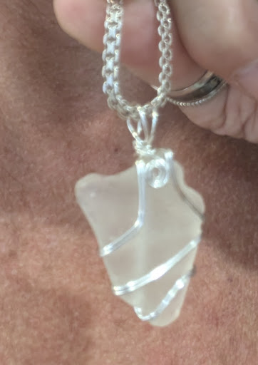My husband found this sea glass and Heather made it into the most beautiful ring. She did it so quick too! I though she might have to mail it but had it ready for us the next day. She did the most beautiful design with the wrapped silver. She is insanely talented!