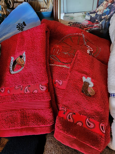 Custom embroidery. Give them a call for all of your embroidery and sewing needs. They do sewing, quilting, baby blankets, table...