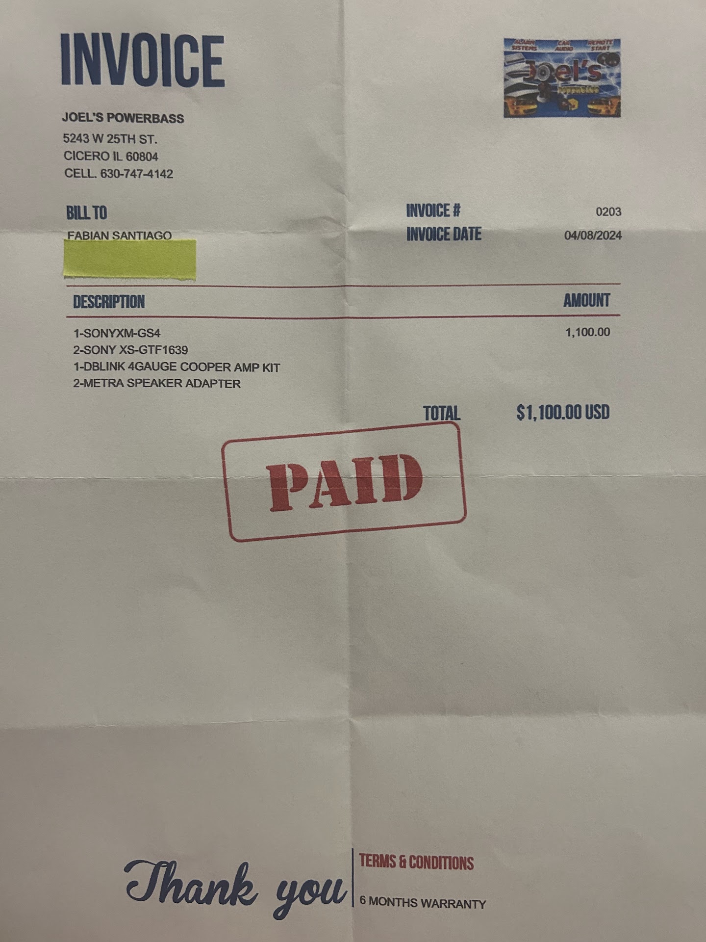 I engaged Joelâs powerbase company to install an upgrade on my Sterio system fora brand new 2024 Chevy Malibu I was given several estimates for various units and ultimately decided on a package for the cost of $1100. I was informed by Joel that the installation would consume approximately four hour period of time and at that sound system would be greatly improved and completed within a four hour period of time. The owner of the shop is short staffed. One employee performed the entire systems upgrade and consume approximately a nine hour period of time before my car was ultimately returned to me, and the Soundsystem quality was generic. I was very disappointed at the ordeal I was forced to endure in order to execute this so-called speaker/amp upgrade. The quality was deplorable and every single person that has driven in my car has indicated that not only is the sound quality poor, but that I was robbed. after my experience with Joel powerbase I wouldnât recommend that anyone do business...