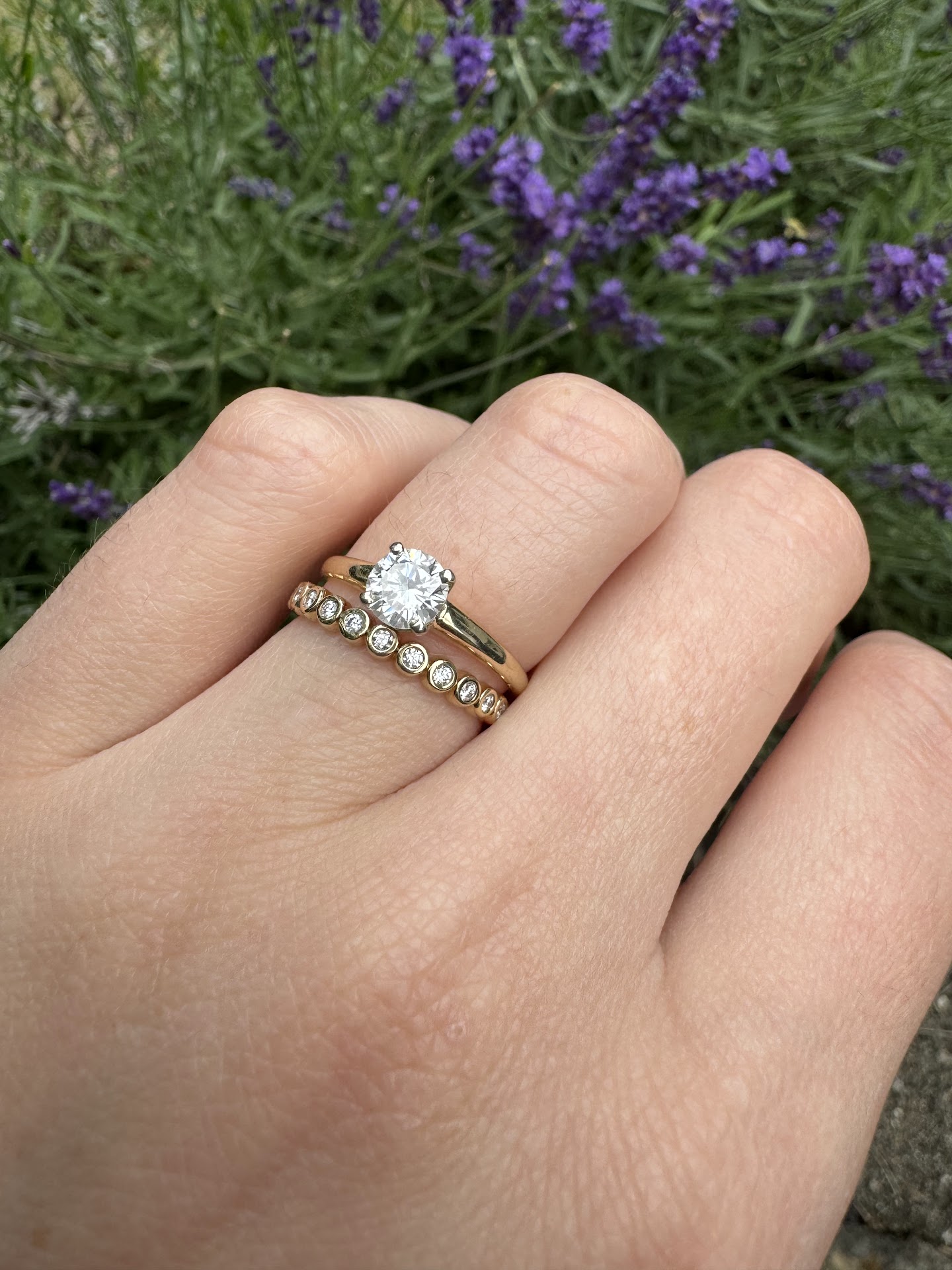 It seems like a sheer coincidence that Jordan and I first met in 2010 at Murray State University. After both growing up in Louisville, Kentucky and unknowingly crossing paths on several occasions, we both chose to attend and run cross country for the same college. Our relationship that began as teammates quickly grew to friendship and dating. It was during this dating period that I lost my favorite bracelet that I had worn every day for years. When Jordan graduated, he moved to Cincinnati for graduate school at the University of Cincinnati. Living in the Gaslight District and working at Children's Hospital he frequently walked past Paolo's shop. As our dating anniversary was approaching, Jordan wanted to replace the bracelet I lost. However, he could not find an exact replica (it was authentic and made/purchased in Chile) and decided that if he couldn't find the same bracelet he would just have to make a new one. He stopped by Paolo's while walking home from work and went in to discuss the possibility of recreating my lost bracelet. Paolo's recreation of the bracelet was phenomenal: it still had the old South American design with a modern edge. After experiencing Paolo's craftsmanship first hand, Jordan started consulting Paolo with a bigger project in mind; an engagement ring. The ring Jordan and Paolo created is stunning and suits me perfectly. Jordan was so excited to give it to me that he blew off his original plans and proposed the first chance he got seemingly out of the blue early one morning back in March. Since then, I have graduated and followed Jordan to Cincinnati. There was never any doubt that we would trust Paolo with the next exciting step; designing wedding bands! We trust his opinion and expertise implicitly and could never imagine sharing this adventure with the help of any other jeweler. We’ve been married 2 years now and we’re still finding excuses to stop by the store and see what new designs...