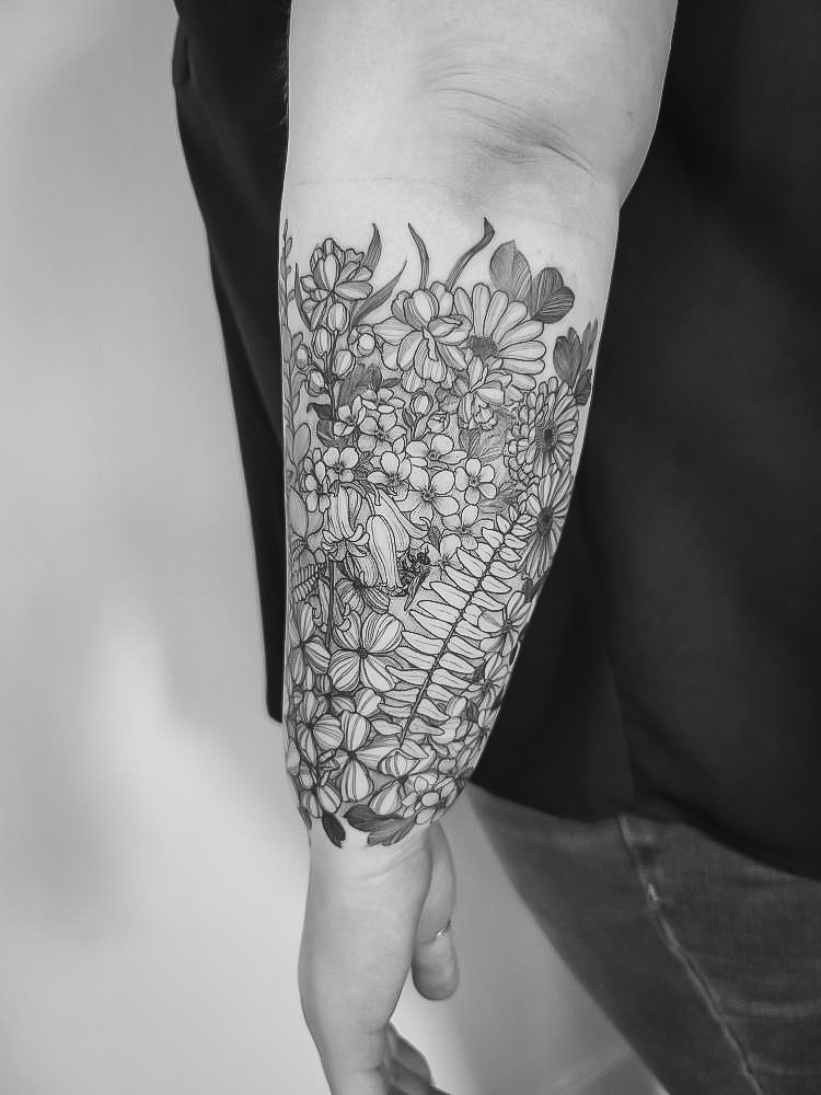 I cannot say enough good things about the artists at The Decorated Body. I had my forearm finished up by Hiren Patel who is so kind and talented. He created a piece for me that is something I look at every day with a big smile. I gave him a list of florals and other nature elements that I love and told him to work in whatever he felt most comfortable doing. To my surprise and pleasure, he incorporated all of it, including a little bee friend (whom I named Lil Sebastian. If you know, you know.) and it’s perfect. I am so enamored by my forearm now. What a strange and great thing to be able to say.