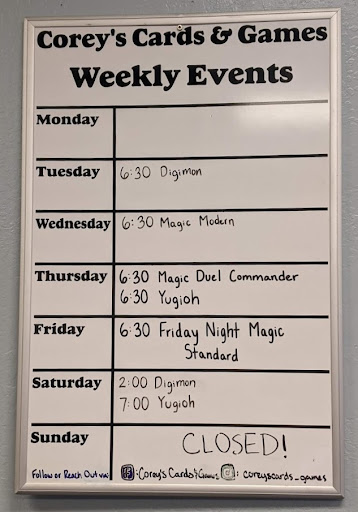 Read moreCory’s Cards and Games is easily the best local shop around not just for the huge selection of cards and games, but for the kind of person Cory is. When I first got into Magic: The Gathering back in covid, Cory was the one who helped guide me on my journey. He took the time to explain things, helped me build my first deck, and never once made me feel out of place or overwhelmed. He’s always there to listen, whether you're a seasoned player or brand new. That kind of patience and personal care is something you don’t find at most stores.