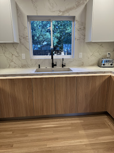 Over several sessions (including a few visits to our home) Dmitry and Eugene (the project manager) worked with us to improve our kitchen design and used their expertise to maximize the functionality, durability, and beauty for our kitchen, while being mindful of our budget. This even included a custom appliance wall to a hidden pantry, which is one our favorite parts of the kitchen.