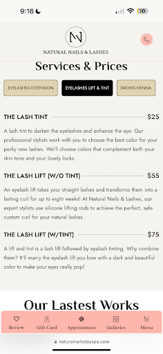 I don’t recommend this place at all. I made an appointment for 9:30 am for eyelashes and nails. I asked the lady to do a hybrid set and also mentioned I had a nose surgery two months ago and to please be careful. First off, the lady never put gloves or mask on, she never offered a mask and she talked through the phone at all times in front of my face. So not even bother for 1 start when it comes to sanitation.. Second, based on the experience I’ve had with eyelashes, they’d clean the area to make sure there is no make up residue on the eyelids, they put a cloth on your forehead to put the eyelashes and then, they work from there with tweezers without putting their hand in the face. But no, this lady, would not only not clean the area and go right away to put the eyelashes on, but could also not find a position to be comfortable and unprofessionally rested her hand on my nose 90% of the time. I told her I felt pressure on my nose. But she didn’t change her position so I guess she did not care. She also put her pinky finger on my nostril where I had my scar healing. I even stopped her and used my hand to move her pinky. Besides that and the on going calls, her colleagues were chitchatting next to us and the experience of finding a relaxing time was not achieved at all. But the most frustrating part of this whole experience was the eyelashes result. She made the eyelashes to look with extreme volume and completely different length than requested. She apologized for the misunderstanding as I specifically explained to her what I wanted at the very beginning and when trying to fix it, She squeezed my eyelids with the tweezers. At that point I made her to stop, paid and left the place. I didn’t even bother for the nails. With situations like this, a customer doesn’t even pay but I wanted to demonstrate her the decency and professionalism that she didn’t offer during this service. A shame...