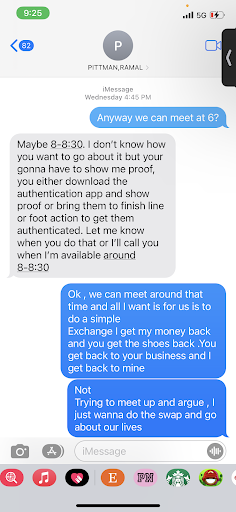 When I met up with them I felt like they were not authentic but proceeded with the transaction since he assured me they were authentic . And he has a real store so I believed him. I authenticated them at home and told him they were fake he refused to believe they were replicas . But he did mention if I can prove they are replicas he will give me a full refund . So I tried to sell all 7 pairs on goat and goat authenticated them and said they were replicas . He was not responded to my messages after showing proof. Very unprofessional as a...