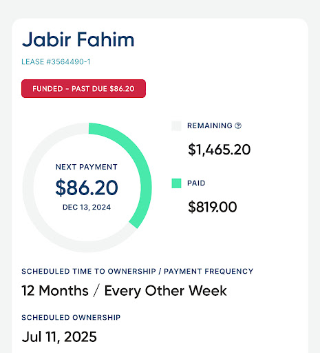 Read moreupdate: 4 months later just realized i was scammed. I offered to pay the full payment in cash and he told me just to do it online bc its better. Didn’t even bother to show me the lease agreement just said sign here for your receipt even though i was signing up for a lease agreement. he also got me to do a nice google review for a few bucks off to get one out of me. All of these reviews are fake bc he gives a little discount if you do one in front of him. 4 months later im seeing my 1,000$ mattress is now 2400$. i already paid 820$ they wont even let me pay off the remaining. balance without a 1350$ additional payment. Called him to ask what happened. Do not fall for this guys scam, went in there to get a good deal and now am paying more than what brand mattress stores cost. Look at the picture, I bought the mattress for 900$ and this is how much i...