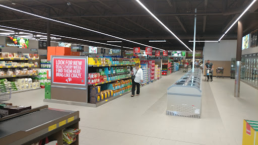 Great selection of fresh produce (vegetables and animal based protein) , canned goods, snack food, and frozen goods. The refrigerators used to store temperature sensitive products are always at the optimal temperature, items that are out of stock are always refilled promptly, and when they are actually out of something it is quickly replaced with something else, which is usually equally as good. The employees occasionally seen restocking products are always helpful when asked where to find something, and the cashiers are very VERY good at what they do, especially in terms keeping things running smoothly. The same compliment can be extended to the managerial staff that coordinates the decisions to put more cashiers on the floor when the line becomes too much for one register attendant to handle. Getting in to the parking lot of this location is a little odd, as you can only pull directly in to the Aldi parking lot via a right hand turn (according to the signs posted on the road, but who really cares right?), otherwise you have to make a left turn in to the CVS parking lot and drive up to Aldi. They've been handling the pandemic situation very effectively as well, especially considering the fact they waived the $0.25 loan to use the carts ( from what I over heard while shopping they have recently gone back to the "quarter per cart" system, but it's still nice knowing it wasn't like that at the peak of the crisis). There is constantly someone sanitizing the carts at the door, and they have signs specifying that masks are required for entry. That being said, there has been one, maybe two, occurrences where someone enters the premises with out a mask. As much as I'd like for a person not following said guidelines to be confronted, I haven't personally witnessed it.. though, the other customers in these situations seemed to be very cognizant, and avoided said individuals. I cant blame employees for not saying anything either, as that sort of social interaction is not necessarily a required part of the job, and could be potentially a very stressful thing for an employee to do. On a similar note, it is worth saying that the management have placed stickers on the ground, as well as signs that are posted indicating the direction in which customer traffic should be oriented (which again, is ignored for the most part.. but the fact it's prominently posted deems it acceptable in terms of preventative measures being placed). Overall, I would rate this location as one of the best in Rochester, and if you live closer to other Aldi storefronts, such as the Lake Ave location, it's worth it to drive the extra ten minutes to give this location your business. All around a pleasant experience that is coordinated by people who clearly know how to run an efficient and pleasant grocery store, would reccomend 10/10 to anyone who is interested in shopping for household goods...