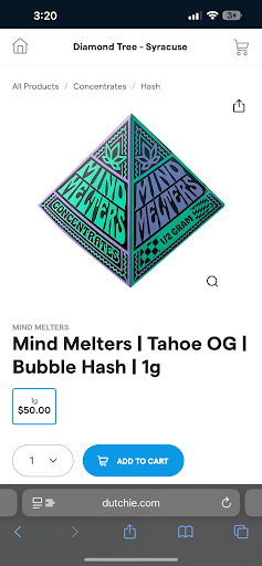 At a point where flower just doesn’t cut it for my pain relief. Thank you for selling bubble hash. The Mind Melters literally made me feel like my knees were going to buckle making me literally melt to the ground. I had to clamp my fists to actually understand this numbness. 😂 Wow. It says 1/2 gram in the picture so I’m not sure if this is a gram or half a gram. Anyway I’m very happy. Delivery service was prompt and friendly. Thank you so much for providing real medicine for my pain. The oil is over rated buyin a rig, a flame torch etc etc (what a waste of time). Get the original and get Hash. To compliment your flower when dealing with horrible nerve pain, smoke that Og, that hash baby. Bubble hash!! The Mecca of weed and thc. Thank you Diamond. You guys were friendly and understanding. You knew I needed this. 🙏🙏🙏💯🫡 shout out to...