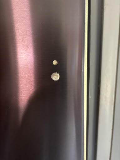 After the delivery people left we noticed they left these holes exposed on the front of our new refrigerator. Apparently there are holes on both sides to accommodate handle placement but the person installing is supposed to install some sort of delete plates on the holes that were not used.